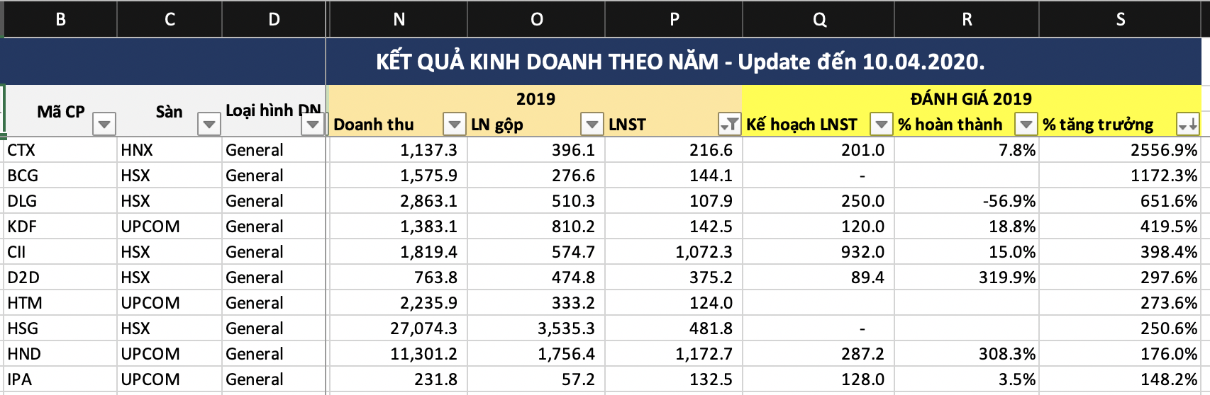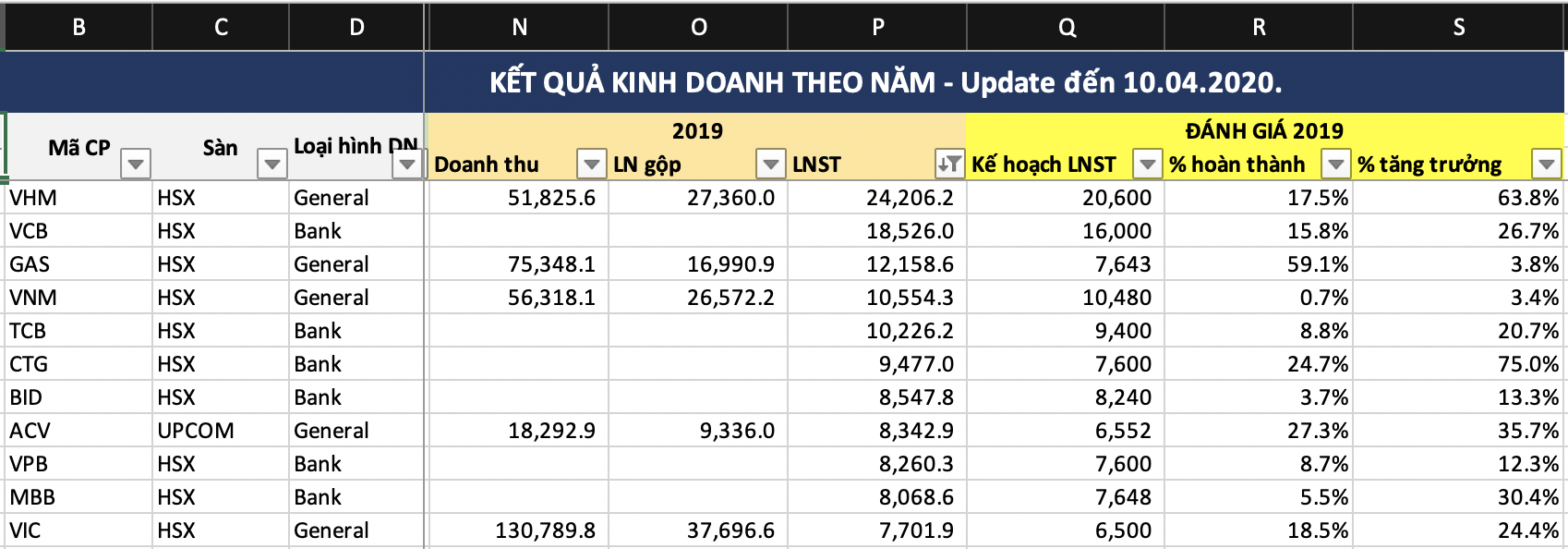 Và bộ số liệu KQKD 2019 phần lớn sẽ giúp anh/chị lọc ra được những cổ phiếu tốt (mạnh), tiềm năng.