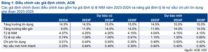 • Giảm 22/5 điểm cơ bản giả định tỷ lệ NIM cho năm 2023-2024 xuống4,04%/4,15% trong khi giữ nguyên giả định cho năm 2025 ở mức 4,15%. Mặc dù