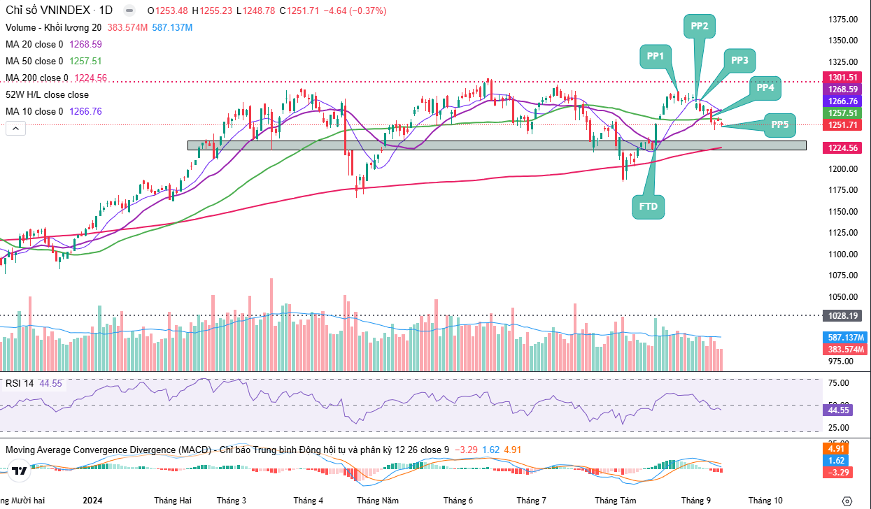 Phân tích kỹ thuật: Ngưỡng hỗ trợ 1250 điểm cho phản ứng khá tích cực trong tuần qua tuy nhiên chưa có cơ sở xác nhận đây là đáy của nhịp điều chỉnh bởi thanh khoản hiện tại trên thị trường đang rất yếu ớt.