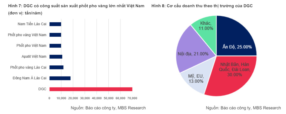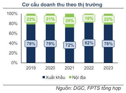 Cơ cấu doanh thu theo thị trường: Sản phẩm của DGC chủ yếu được tiêu thụ trên thị trường xuất khẩu. Khoảng 80% doanh thu của DGC đến từ thị trường xuất khẩu. Hầu hết các sản phẩm chính như phốt pho vàng, TPA và WPA sẽ được xuất khẩu sang các quốc gia trong khu vực châu Á như Ấn Độ, Nhật Bản, Hàn Quốc, Đài Loan.